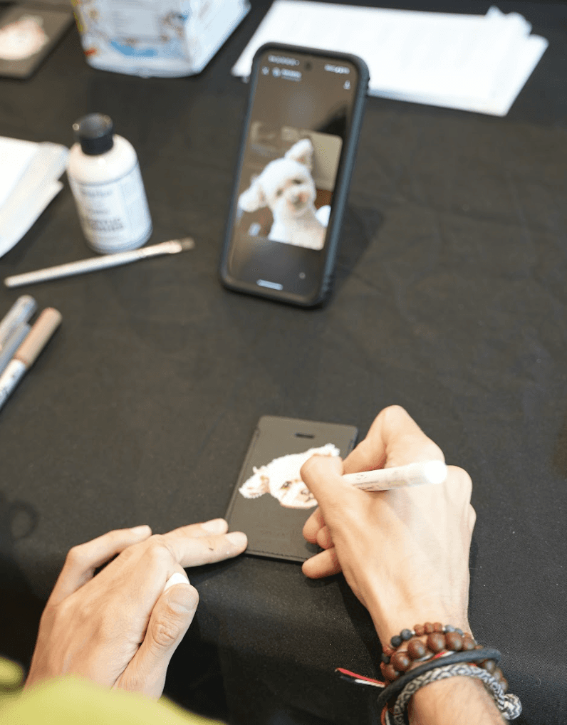 A live personalization experience with Away invited customers to transform their luggage into something unmistakably their own. Artists painted custom illustrations directly onto Away luggage tags on-site, turning a simple travel accessory into a personal piece of art. Guests could choose a subject — from beloved pets to custom icons — and watch as artists brought the design to life in real time.